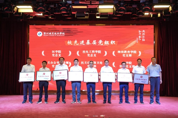 在中国共产党成立104周年之际,6月30日下午,我校在学校图书馆一号报告厅举行“七一”表彰大会暨党委书记讲专题党课。校党委书记徐须实,党委副书记、校长吕延文,党委委员、纪委书记方焕云,党委委员、副校长余建军、徐浪静、姚水洪,党委委员、宣传部部长孔庆红,党委委员、组织部部长周帅出席,党委副书记何百通主持,各基层党组织书记、委员,师生党员代表等参加。