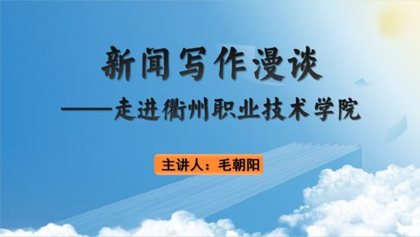 10月30日,我校特邀衢州市总工会原新闻中心主任毛朝阳来校作《新闻写作漫谈》讲座,校党委宣传部部长孔庆红主持。