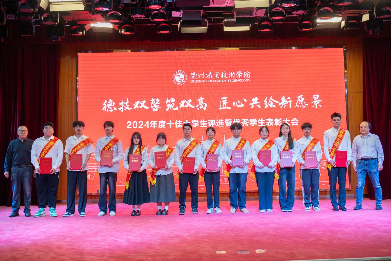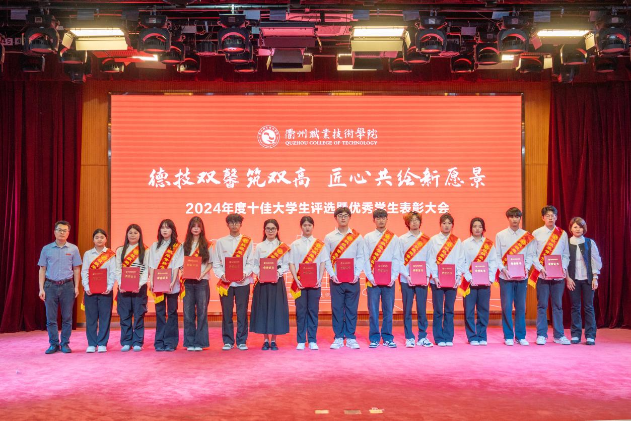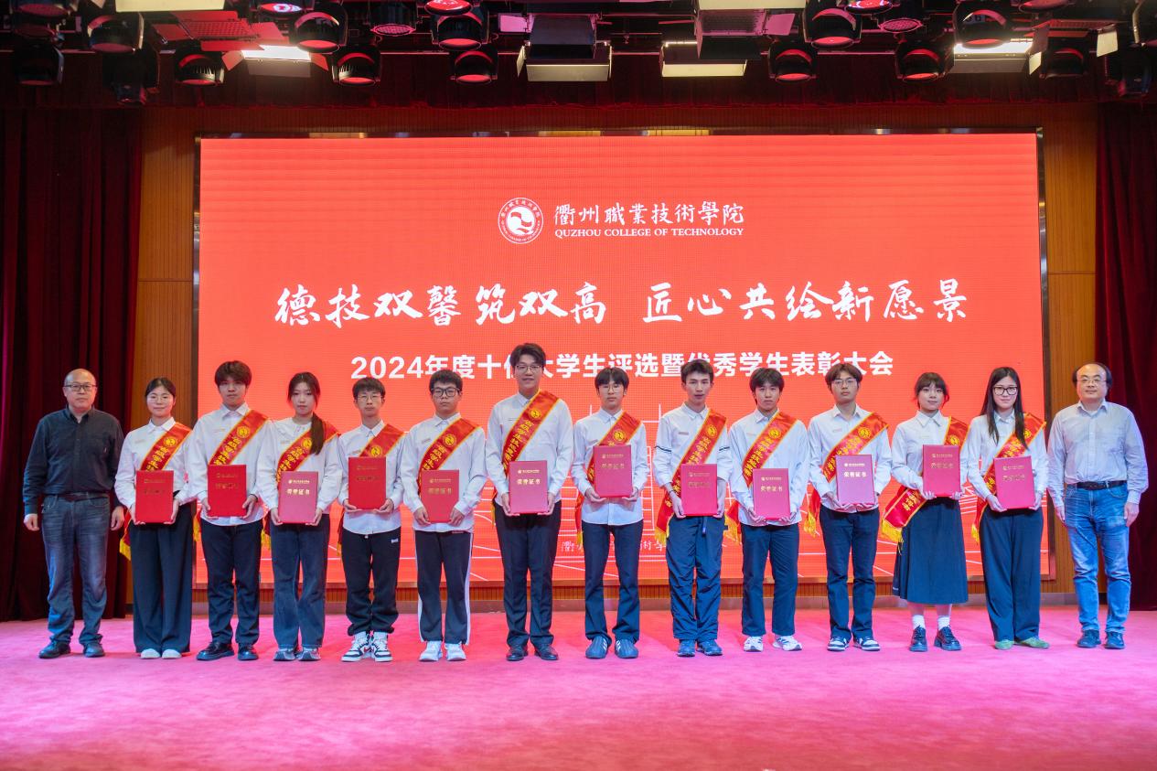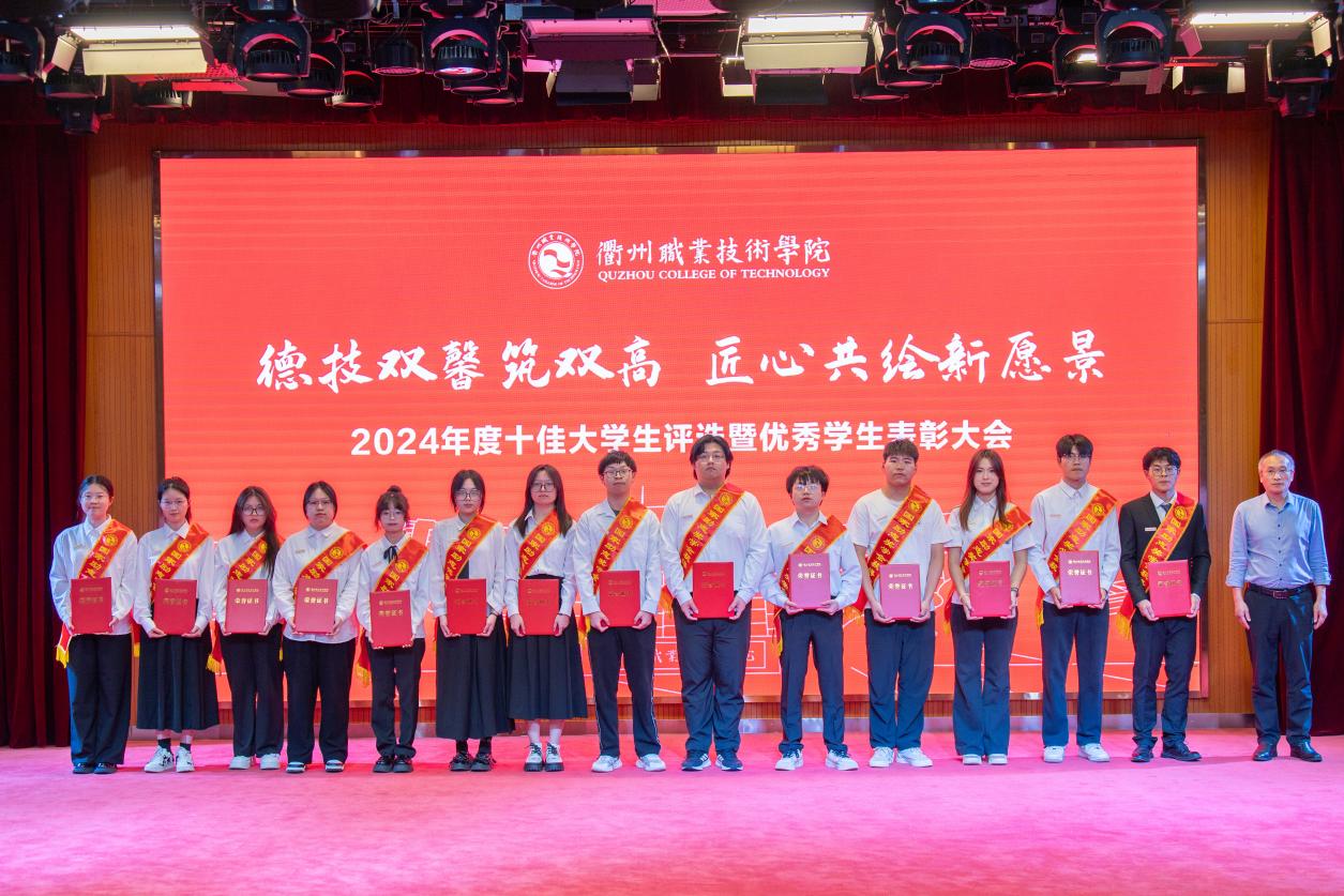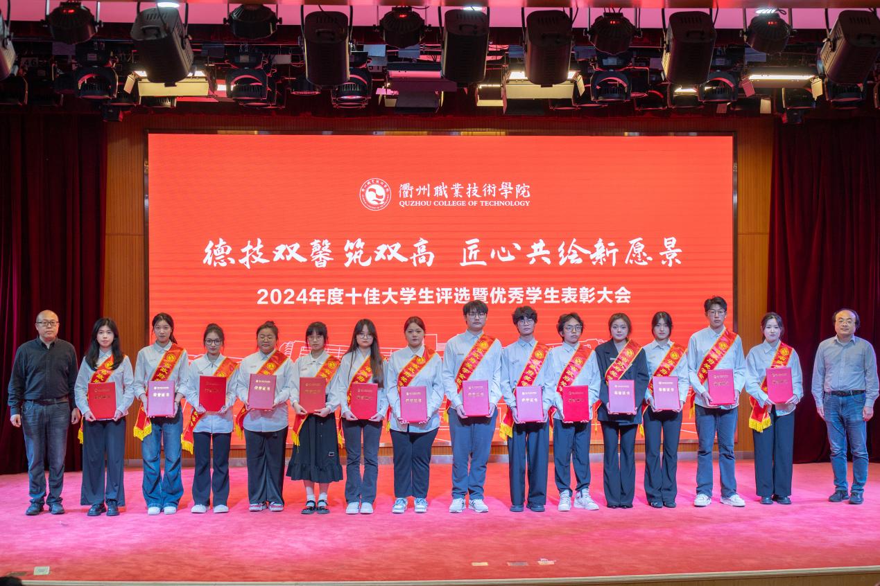我校于2025年3月启动2024年度“十佳大学生”评选工作,经各二级学院推荐、审核,在全校范围内推选出冯梦瑜等13名在思想道德、学业科研、科技创新、社会实践、志愿服务、社会工作等方面表现突出的优秀学生进入到校级评选现场,经过现场演讲展示和评委打分,何百通为获得“衢州职业技术学院2024年度十佳大学生”荣誉的冯梦瑜、鲍苗苗、何佳丽、王鸿宇、林佳豪、陈凯、俞月敏、吴俊华、徐思琪、冯涛,荣获“十佳大学生提名奖”的方子豪、郑馨悦、力祥颁奖。
