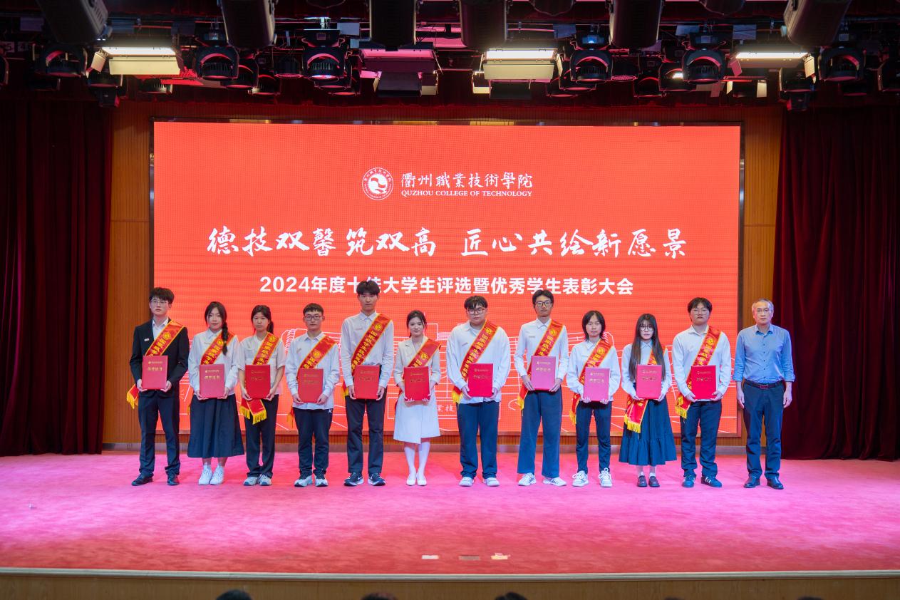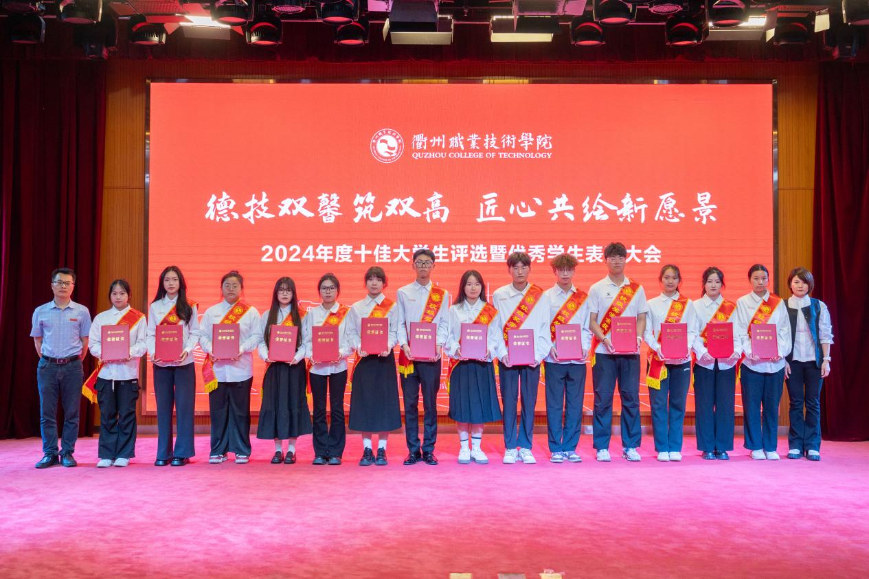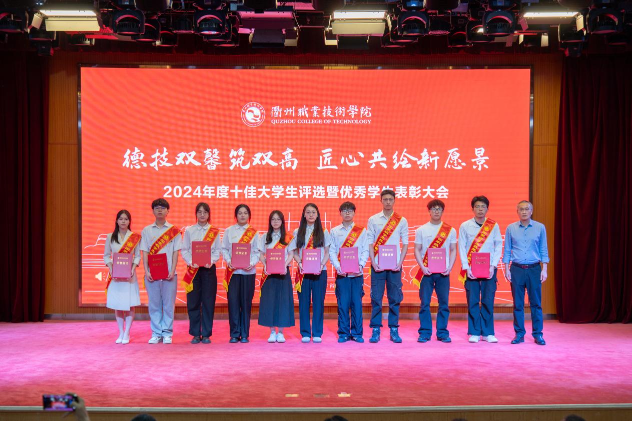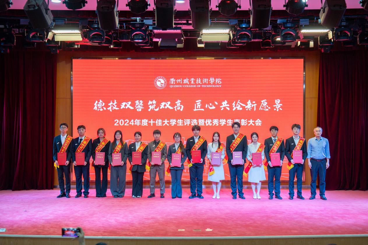 我校于2025年3月启动2024年度“十佳大学生”评选工作,经各二级学院推荐、审核,在全校范围内推选出冯梦瑜等13名在思想道德、学业科研、科技创新、社会实践、志愿服务、社会工作等方面表现突出的优秀学生进入到校级评选现场,经过现场演讲展示和评委打分,何百通为获得“衢州职业技术学院2024年度十佳大学生”荣誉的冯梦瑜、鲍苗苗、何佳丽、王鸿宇、林佳豪、陈凯、俞月敏、吴俊华、徐思琪、冯涛,荣获“十佳大学生提名奖”的方子豪、郑馨悦、力祥颁奖。