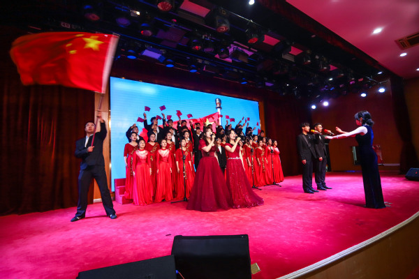 医学院24中药1班带来的《紫荆花盛开》,以合唱、手势舞、钢琴与舞台剧相结合的方式拉开演出序幕,寓意祖国繁荣昌盛。
