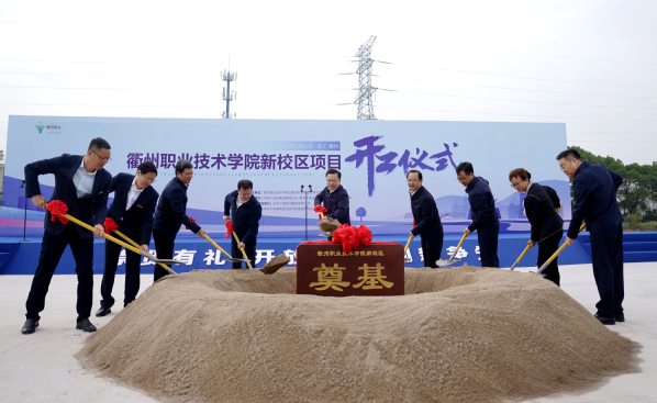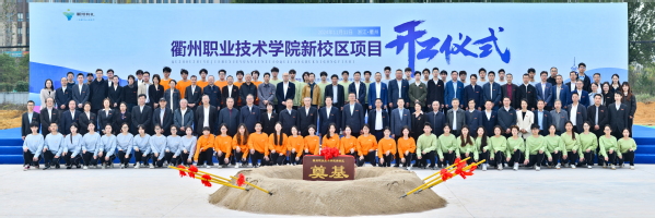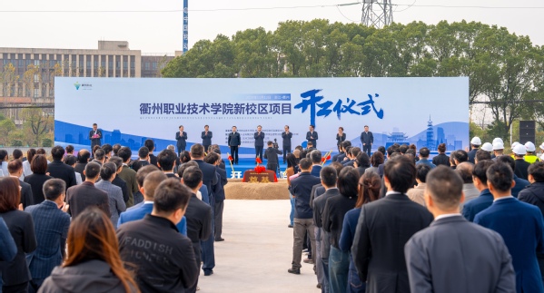 11月12日上午,衢州职业技术学院新校区项目开工仪式在智慧新城举行。市委书记高屹出席并宣布项目开工,市委常委、秘书长李宁,市人大常委会党组副书记、副主任刘根宏,市人民政府副市长杨圆华,市政协副主席吕亮,衢州学院党委书记杨玲,我校党委书记徐须实,中铁十五局集团党委副书记贺修军等出席,校党委副书记、校长吕延文主持。
