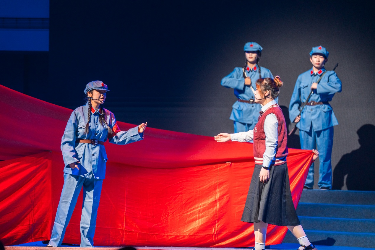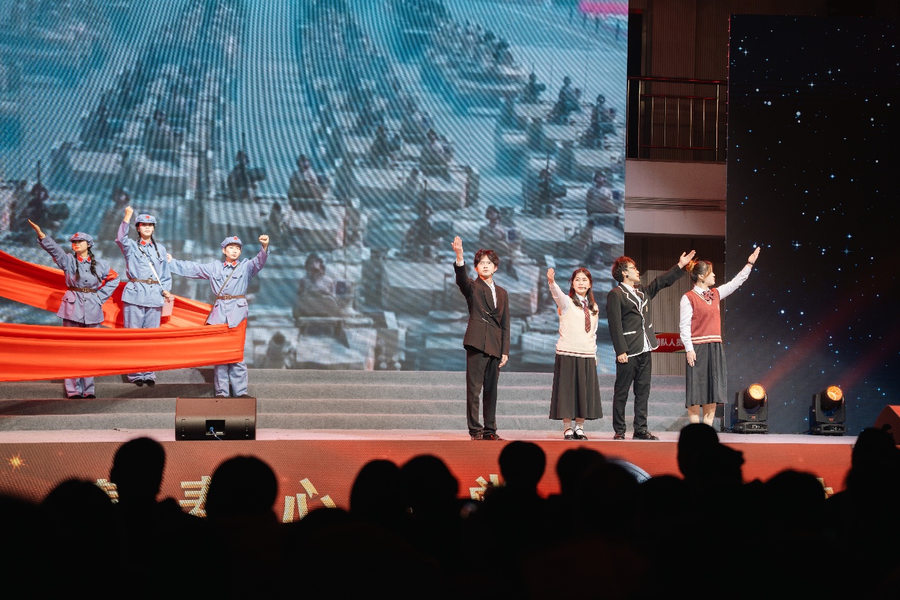 《二十岁的同龄人》,一个在烽火中追寻光明,一个在盛世里筑梦未来。信息工程学院的同学们通过演绎两个时代年轻人的对话,表达了对信仰的执着与对未来的期许。
